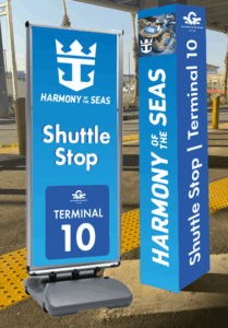 This shuttle will take you directly to the Royal Caribbean Terminal. Look for signs that look like the photo below.