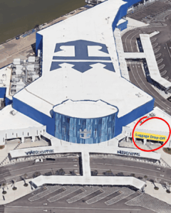 Please drive to the Royal Caribbean Terminal and drop off your luggage FIRST. If you need assistance, Porters will be available to check in your luggage.